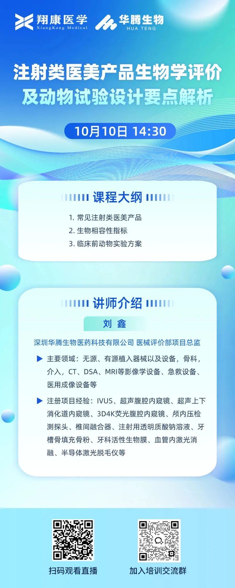 【云課堂直播】10月10日《注射類醫(yī)美產(chǎn)品生物學(xué)評(píng)價(jià)及動(dòng)物試驗(yàn)設(shè)計(jì)要點(diǎn)解析》