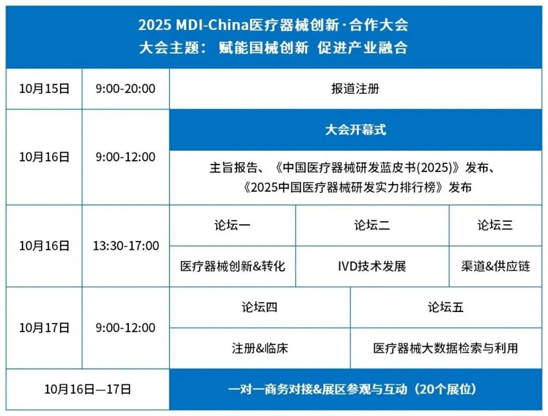【重慶】翔康醫(yī)學(xué)邀您參加2025MDI-China醫(yī)療器械創(chuàng)新·合作大會發(fā)表時間:2025-10-13 09:43 ![]() 在生物醫(yī)藥產(chǎn)業(yè)快速發(fā)展的背景下,過去十年間,醫(yī)療器械領(lǐng)域保持了年均超過15%的增長速率,已成為當(dāng)前最具發(fā)展前景的行業(yè)之一。然而,創(chuàng)新技術(shù)如何高效落地、優(yōu)質(zhì)資源如何優(yōu)化配置、產(chǎn)業(yè)鏈上下游如何實現(xiàn)有效協(xié)同,仍是當(dāng)前需要深入探討的關(guān)鍵問題。 為促進(jìn)醫(yī)療器械行業(yè)的創(chuàng)新與資源整合,加強產(chǎn)學(xué)研醫(yī)各方之間的協(xié)作,在由中國醫(yī)療器械行業(yè)協(xié)會指導(dǎo),藥智網(wǎng)、《中國醫(yī)療設(shè)備》雜志社與重慶郵電大學(xué)共同主辦的“2025MDI-China醫(yī)療器械創(chuàng)新·合作大會”將于2025年10月16日至17日在重慶召開。 翔康醫(yī)學(xué)將參與本次大會,并在會場設(shè)置展位(展位號:A06)。此外,翔康醫(yī)學(xué)副總經(jīng)理張軍先生將進(jìn)行題為《如何快速完成臨床評價和臨床試驗》的專題報告。我們誠摯邀請您蒞臨翔康醫(yī)學(xué)展位,期待以我們專業(yè)的CRO/CDMO服務(wù),助力您的創(chuàng)新醫(yī)療器械項目從概念階段走向全球市場。 ![]()