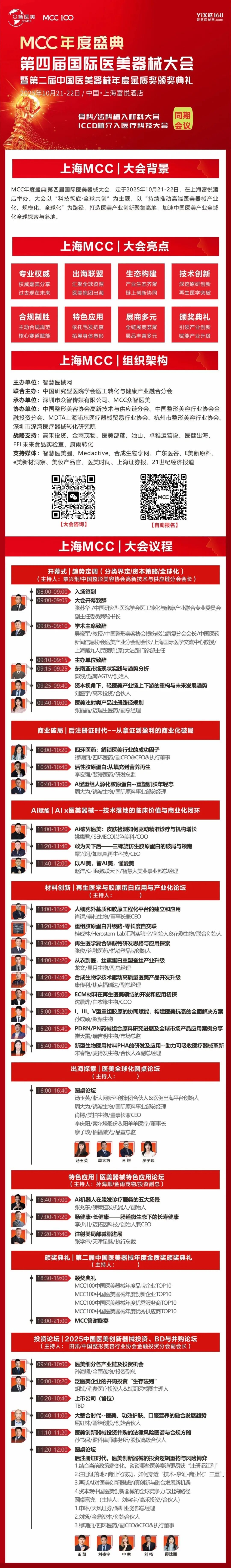 【上?!肯杩滇t(yī)學(xué)誠邀您參加MCC年度盛典,共話醫(yī)美新機(jī)遇!發(fā)表時間:2025-10-15 09:07 MCC年度盛典|第四屆國際醫(yī)美器械大會,定于2025年10月21-22日,在上海富悅大酒店(點(diǎn)擊跳轉(zhuǎn)導(dǎo)航)舉辦。大會以“科技筑底·全球共創(chuàng)”為主題,以“持續(xù)推動高端醫(yī)美器械產(chǎn)業(yè)化、規(guī)?;?、全球化”為路徑,打造醫(yī)美產(chǎn)業(yè)創(chuàng)新聚集高地,加速中國醫(yī)美產(chǎn)業(yè)全域化全球探索與落地。 本次盛會,翔康醫(yī)學(xué)將在B01展位精彩亮相,誠邀各位醫(yī)美同仁蒞臨指導(dǎo)。 ![]() ![]() ![]() ![]() 監(jiān)管機(jī)構(gòu)、學(xué)術(shù)專家(國內(nèi))、學(xué)術(shù)專家(歐美韓日東南亞)、全球渠道上游品牌(注射/光電/無創(chuàng)/敷料/藥械妝)、成果轉(zhuǎn)化、醫(yī)美原料、項(xiàng)目與資方、合同代工/研發(fā)/制造、生產(chǎn)裝備、其他。 ![]() 2025MCC年度盛典開幕期間,結(jié)合智慧醫(yī)械網(wǎng)優(yōu)勢資源,聯(lián)袂上演骨科&齒科、心腦血管植介入醫(yī)療器械科技大會,首次將嚴(yán)肅醫(yī)療與消費(fèi)醫(yī)療有機(jī)結(jié)合,相互借鑒、互為補(bǔ)充,共商大計,滿載而歸。 ![]() ![]() ![]() ![]() 免責(zé)聲明:本文內(nèi)容根據(jù)網(wǎng)絡(luò)信息整理,旨在學(xué)習(xí)分享,文章版權(quán)歸原作者。文章觀點(diǎn)并不代表本公眾號立場,本公眾號不對其準(zhǔn)確性、可靠性和完整性做任何保證。如涉及文章內(nèi)容版權(quán)和其它問題,請跟我們聯(lián)系處理。 |