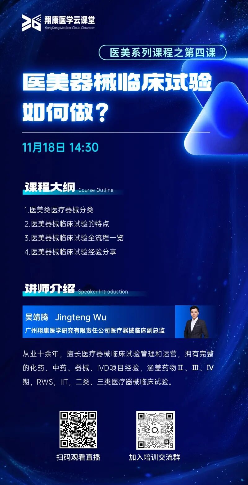 【云課堂直播】11月18日《醫(yī)美器械臨床試驗(yàn)如何做?》